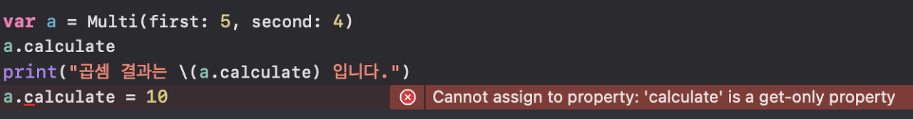 print("곱셈 결과는 \(a.calculate) 입니다.")